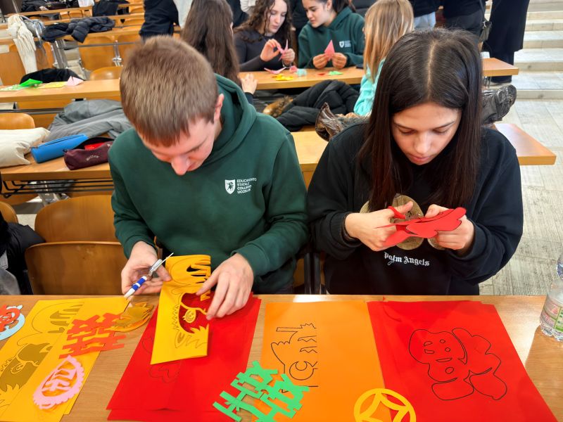 学生体验剪纸。发(塞拉芬摄) 为期3天的阿戈戈国际跳舞节当日正在这里揭幕。